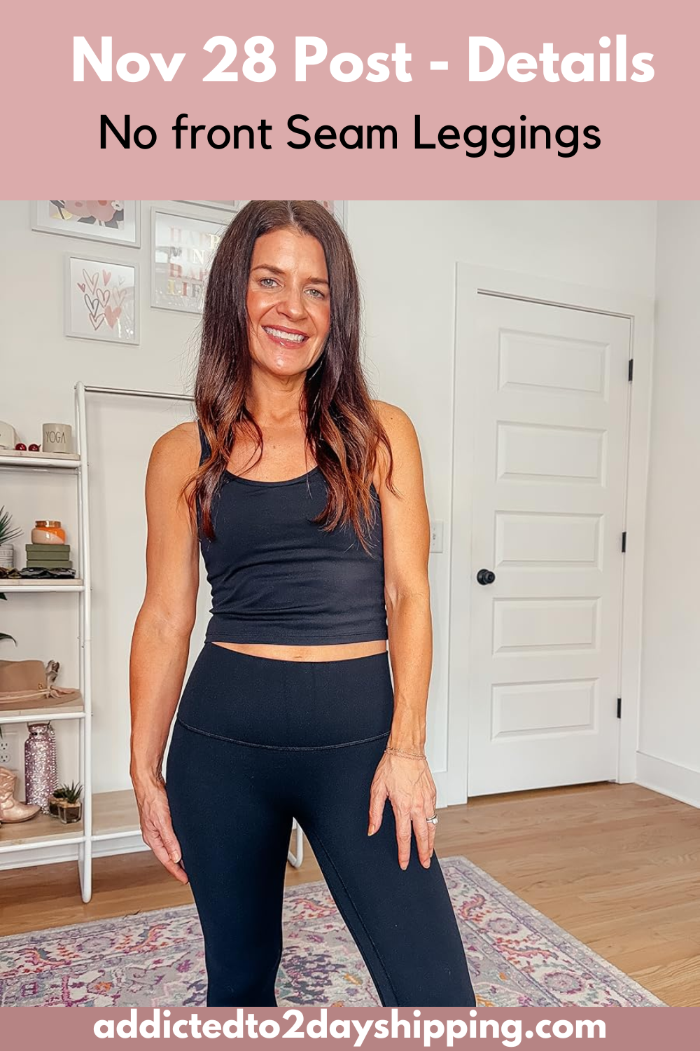 New No Front Seam Leggings – 15% off, under $28. Price is marked down on listing. I am wearing an XS and find they fit true to size.