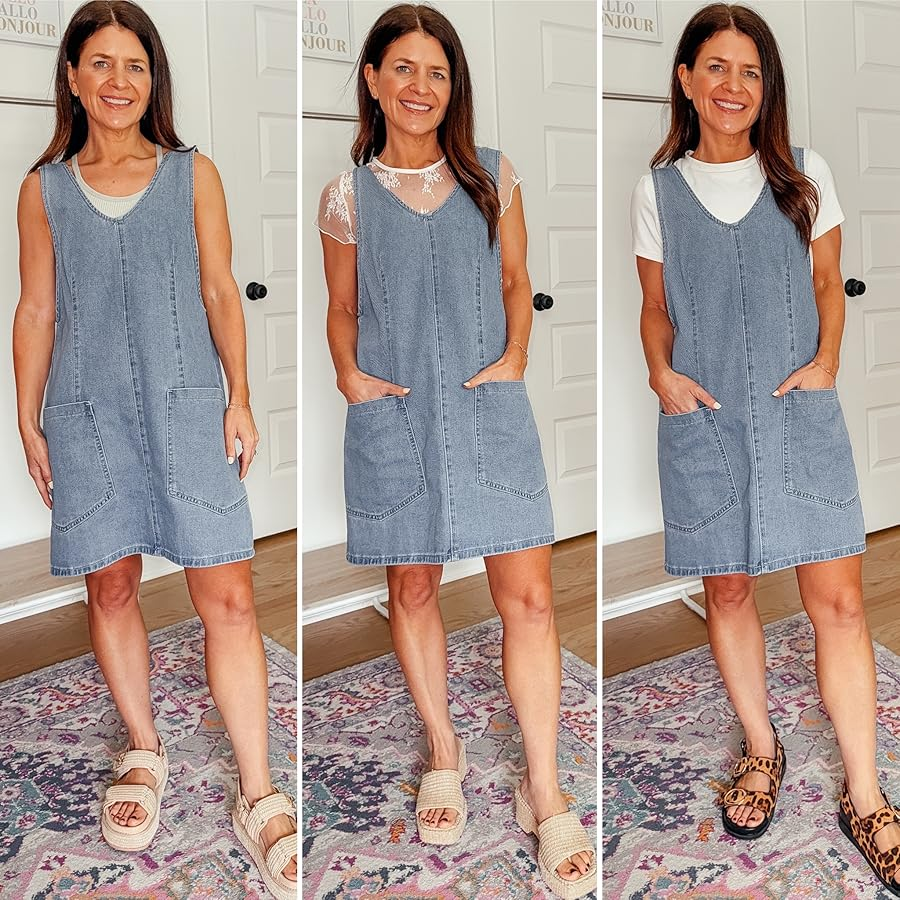 Denim Dress – 46% off, under $20. Use code DC9HGS5D. Promo expires 5/22 at midnight PDT. I am wearing a size XS, and find it runs a little big. Go true to size, and you can size down if in-between. Click below to shop