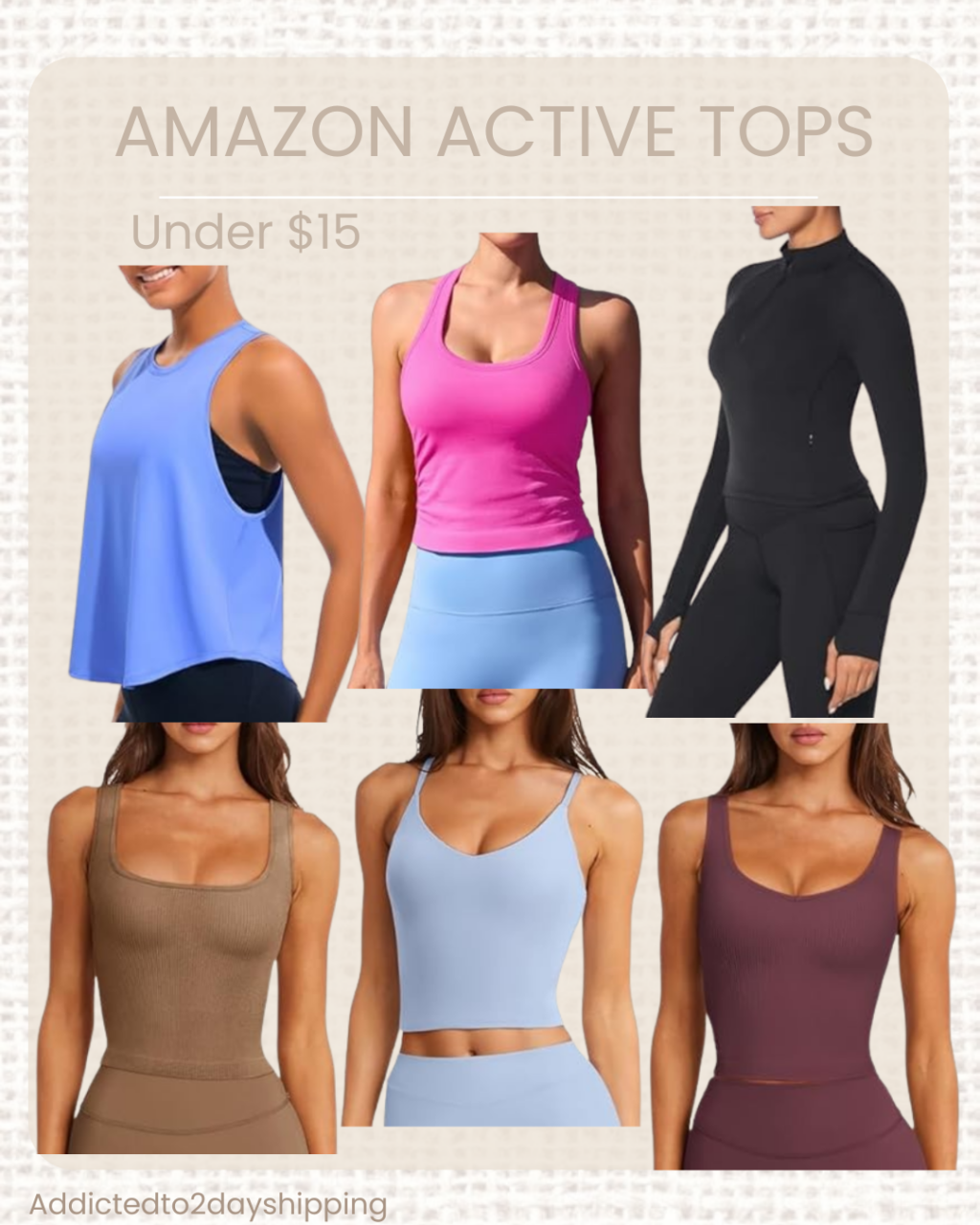 Under $15 Active Tops! Sharing 12 active top deals, ranging in price from $9-$15.