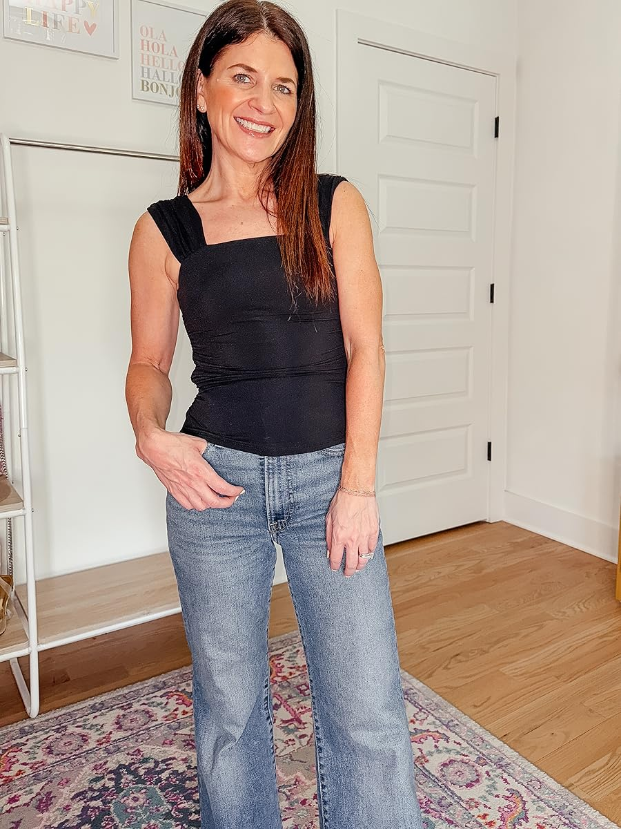 Square Neck Mesh Top – 50% off, under $15. Use code RATQK7VF. Promo expires 6/8 at midnight PDT. I am wearing a size XS and find it fits true to size. Click below to shop.
