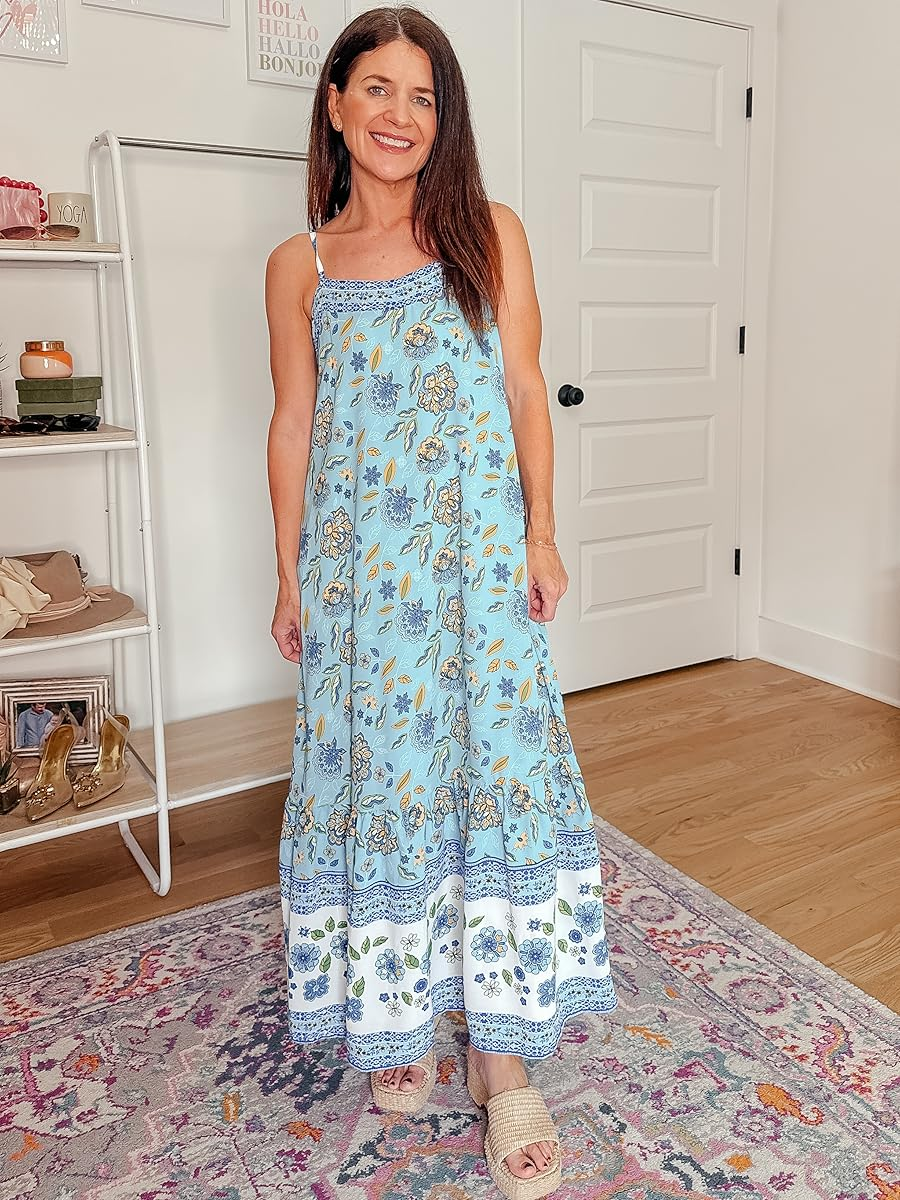 Blue Spaghetti Strap Dress – 35% off, under $23. Use code 35E8UQMB. Promo expires 6/8 at midnight PDT. I am wearing a size small and find it fits true to size. Click below to shop.