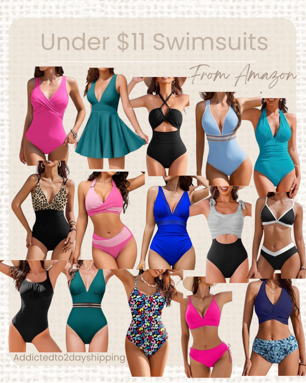 There are so many good swimsuit deals today! I have 15 swimsuits ranging in price from $7-$11! Shop via the collages below!