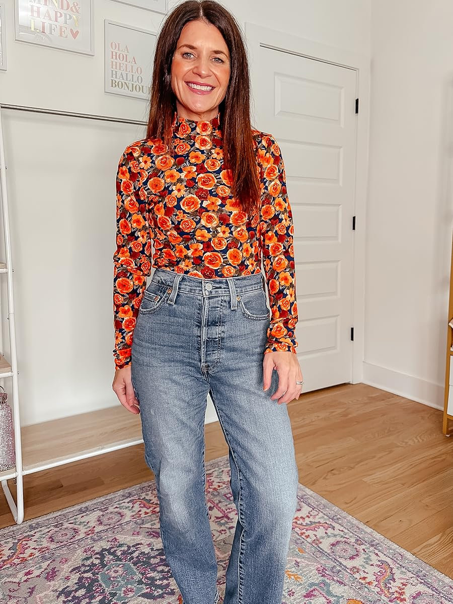 Printed Mock Neck Top – Marked down 40%, + 15% off on listing promo (code = 359VYACO). Click reem on the listing. Under $13. I am wearing a size XS and find it fits true to size. Click below to shop.