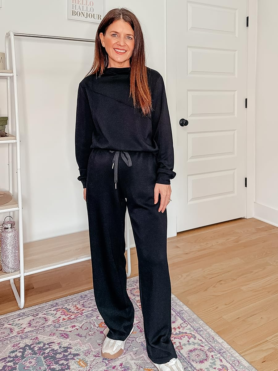 Black Boat Neck Set – EXPIRED. 48% off (25% promo, +20% coupon), under $20. Use code 5XJD2WO5. Promo ends 9/30 at midnight PDT. I am wearing an XS and it is a loose fit. I would go true to size. Click below to shop.