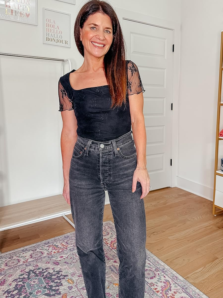 Black Square Neck, Lace Sleeve Top -50% off, under $5. Use code 4RLVKK9C. Promo expires 9/23 at midnight PDT. I am wearing a size small and find the top runs a little small. Click below to shop.