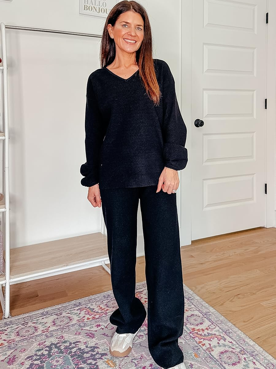 Black Sweater Knit Set – 50% off, under $20, Use code 4G8F8DWT. Promo ends 9/21 at midnight PDT. I am wearing a size XS and find it fits true to size. Click below to shop.