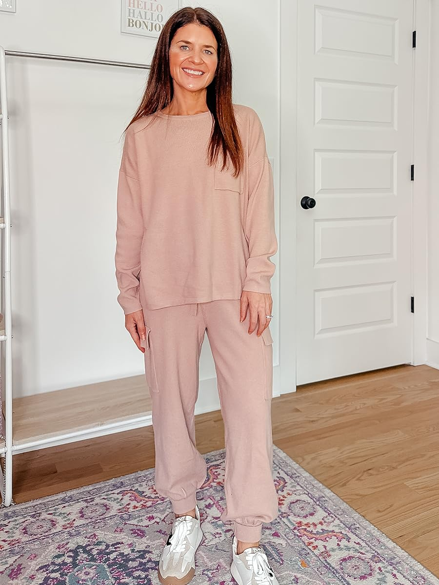 Beige Cargo Pocket Lounge Set (my exact color is sold out) – 55% off (50% promo + 5% coupon), under $18. Use code 7BC89JT9. Promo ends 9/23 at midnight PDT. I am wearing a size XS and find it fits true to size. Click below to shop.