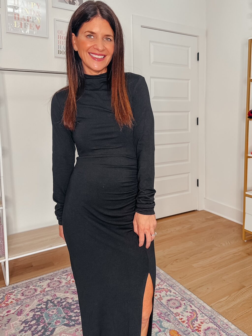 Black Long Mock Neck Dress – 45% off, under $19. Use code 45BPK9LP. Promo expires 10/6 at midnight PDT. I am wearing a size XS and find it fits true to size. Click below to shop.