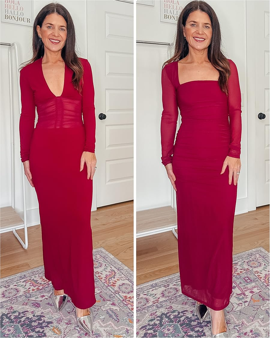 Long Sleeve Wine Dresses- Wearing an XS in both styes. Both are a good fit, I would go true to size. Both also have mark downs currently. See links in caption to shop.