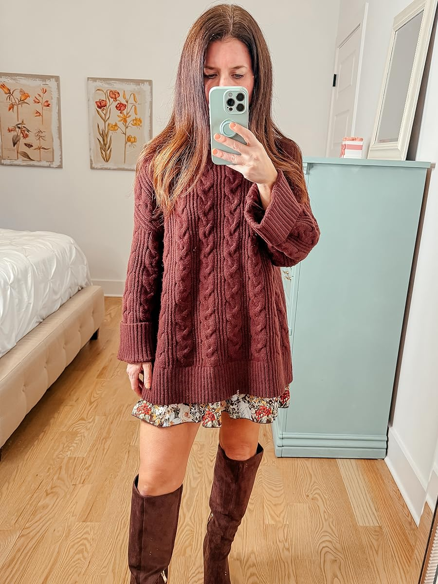Brown Cable Sweater – 45% off, under $23. Use code 45LBB46C. Promo expires 11/10 at midnight PST. I am wearing a size XS and it is a larger fit. Click below to shop.