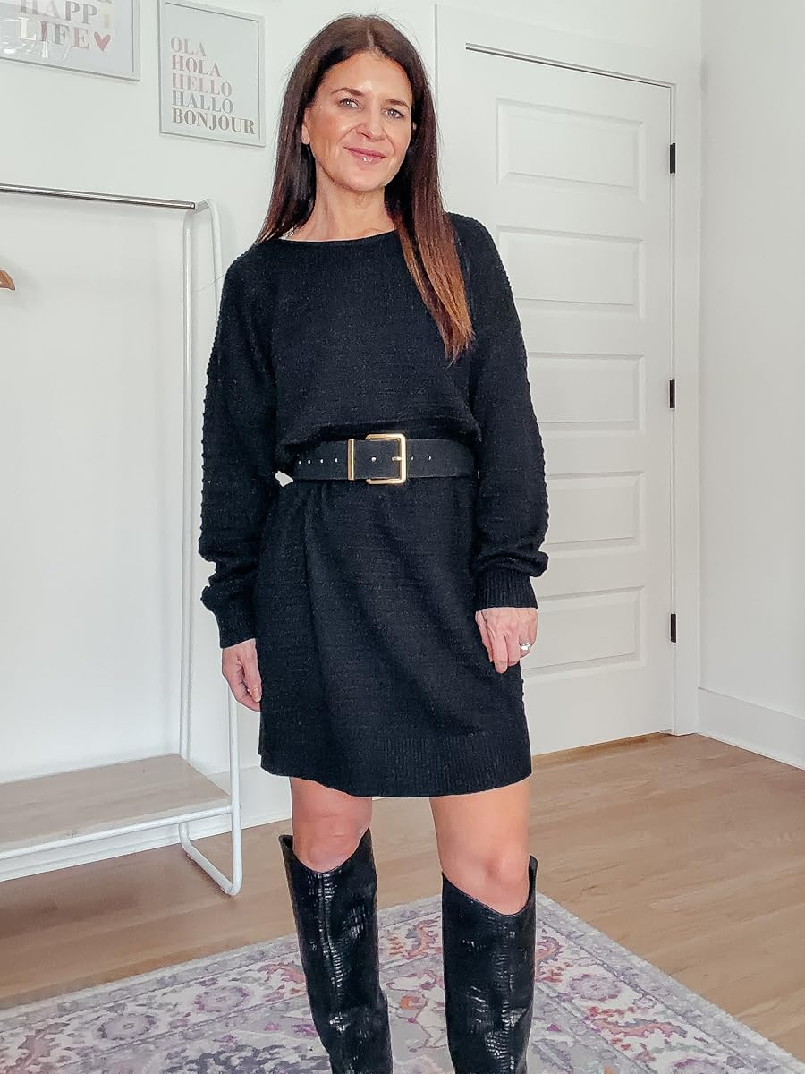 Black Dress – 30% off, under $26. Use code UOO2TTBX. Promo expires 11/10 at midnight PST. I am wearing a size small and find it runs a little big. Click below to shop.