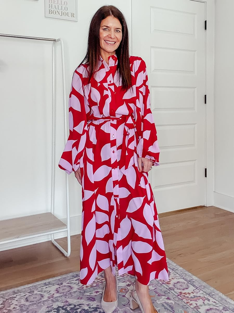 Printed Dress – 50% off, Under $17. Use code 50EWPK49. Promo expires 11/12 at midnight PST. I am wearing a size small and find it runs a little big. Click below to shop.