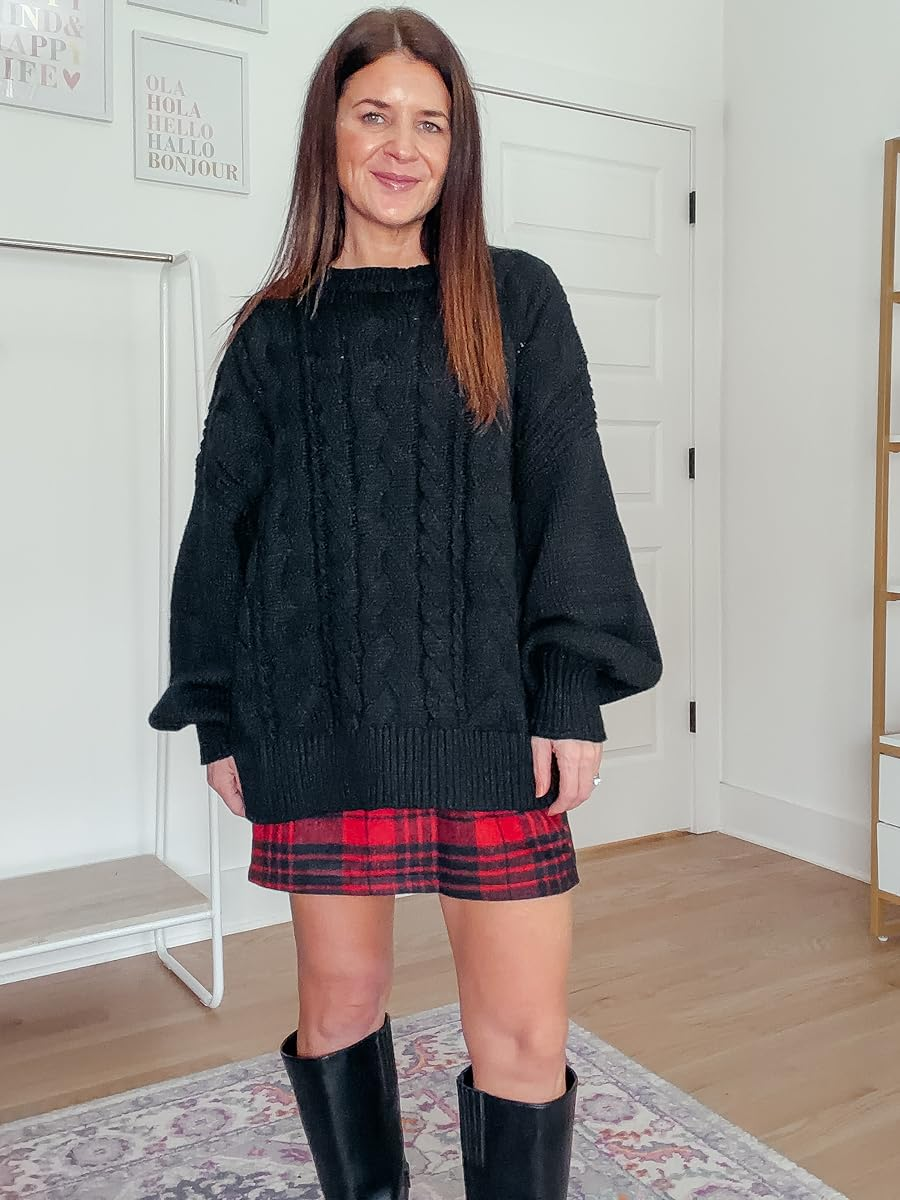 Cable Knit Sweater – 40% off, under $23. Use code 407NPQKU. Promo expires 11/12 at midnight PST. I am wearing a size small and it is a larger fit. I would go true to size. Click below to shop.