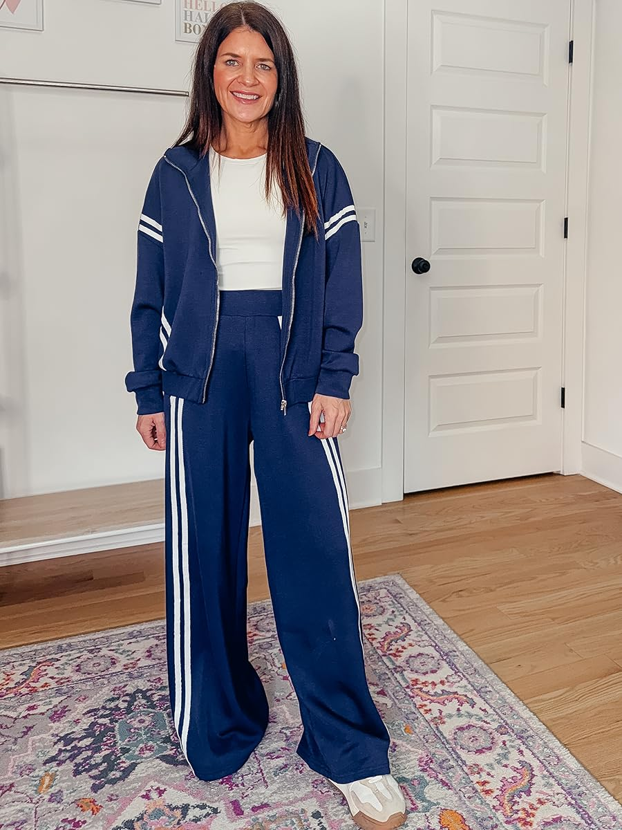 - Navy Zip Hoodie Ribbed Set – D5XJHFXY