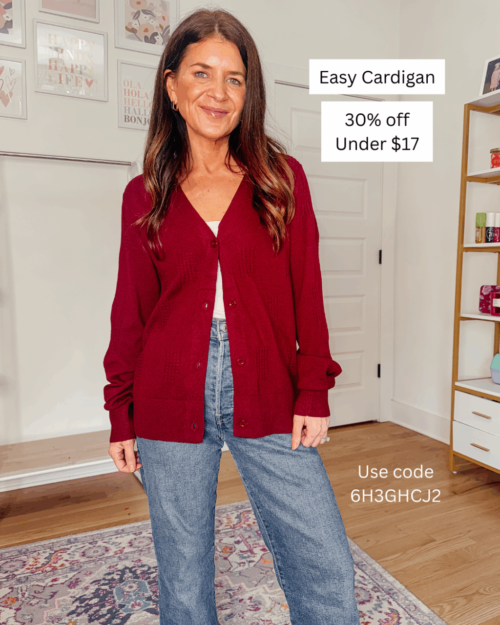 - Burgundy Cardigan – use code 6H3GHCJ2