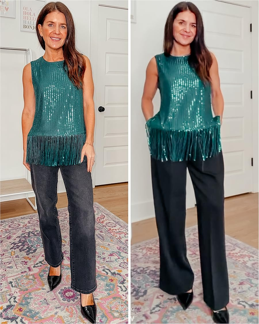 Sequin Top (low stock, especially in sizes S & M) – 49% off, under $9. Use code N4CHYJMD. Promo expires 12/15 at midnight PST. I am wearing a size small and find it fits true to size. Click below to shop.