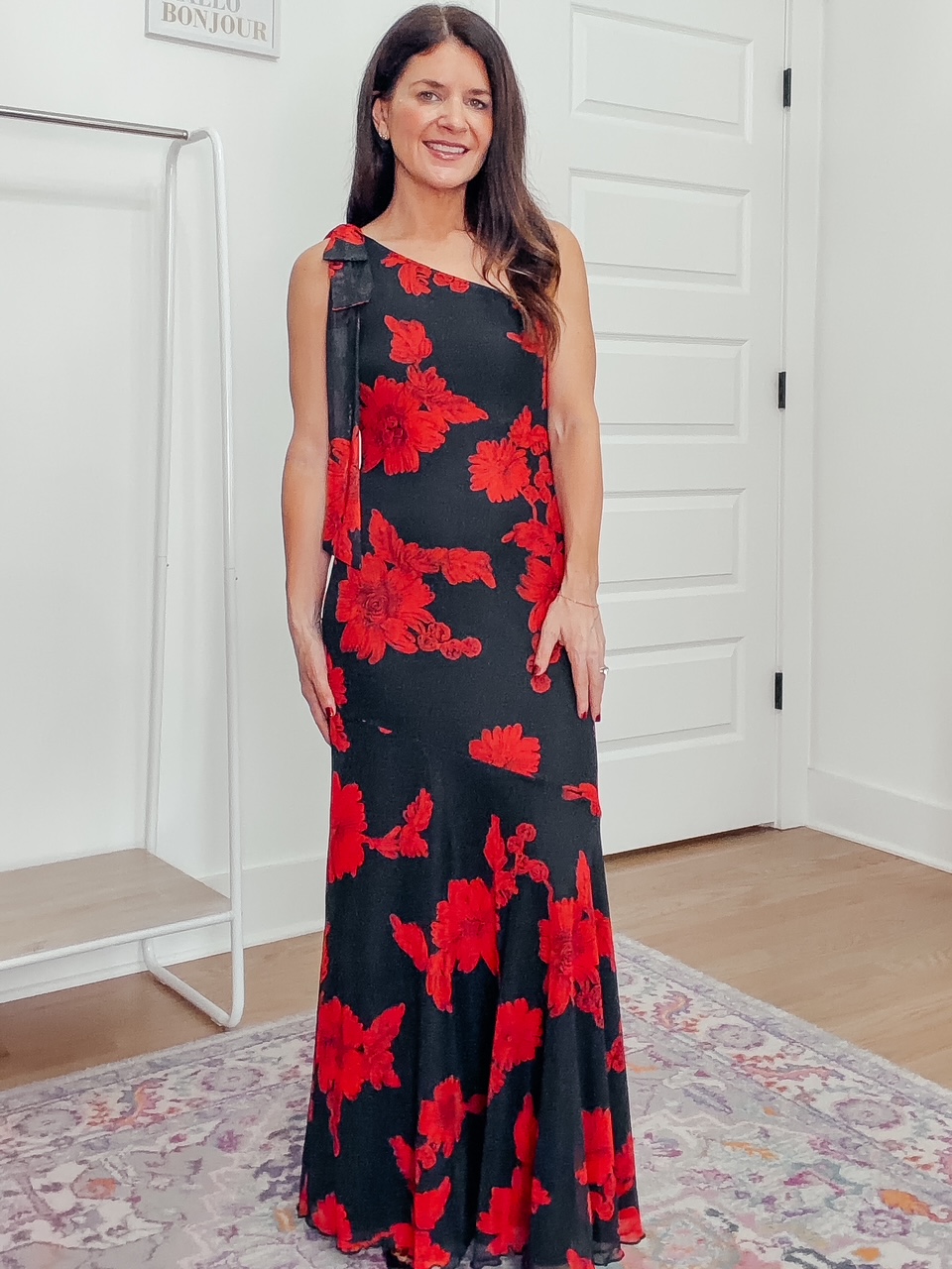 Black/Red One Shoulder Dress – 35% off, under $25. Use code 6UT35F3M. Expires 12/28 at midnight PST. I am wearing a size XS and find it fits true to size. Click below to shop.
