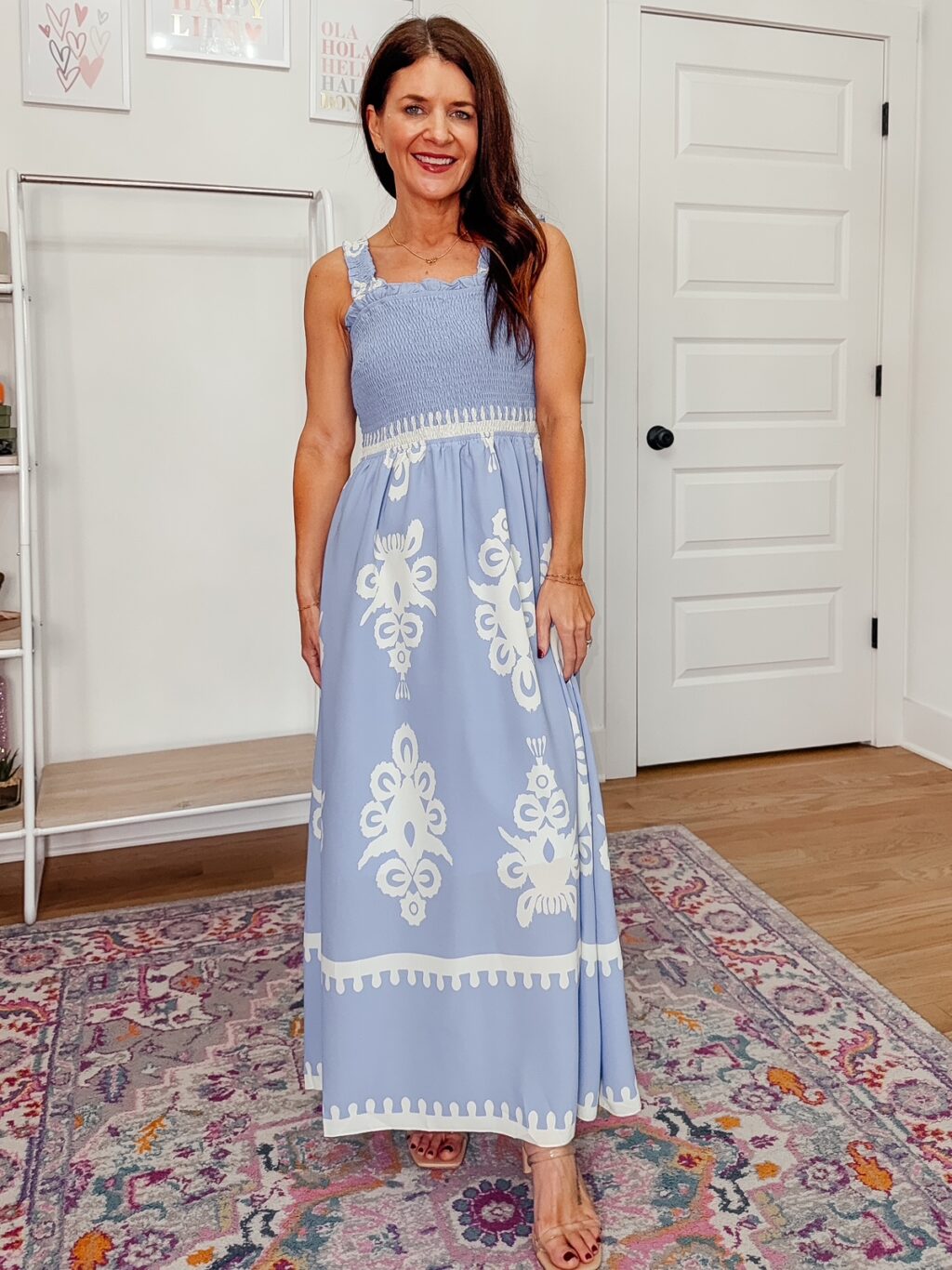 Blue/White Printed Dress – 50% off, under $24. Use code UBWY7YA6. Promo expires 1/14 at midnight PST. I am wearing a size small and find it fits true to size. Click below to shop.