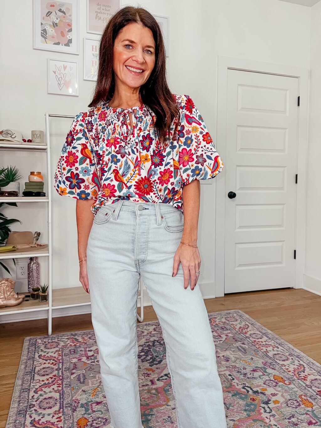 Floral Printed Blouse – 55% off (45% promo + 10% coupon), under $14. Use code K6I8Y6HA. Promo ends 1/22 at midnight PST. Wearing a size S, runs big. Click below to shop.