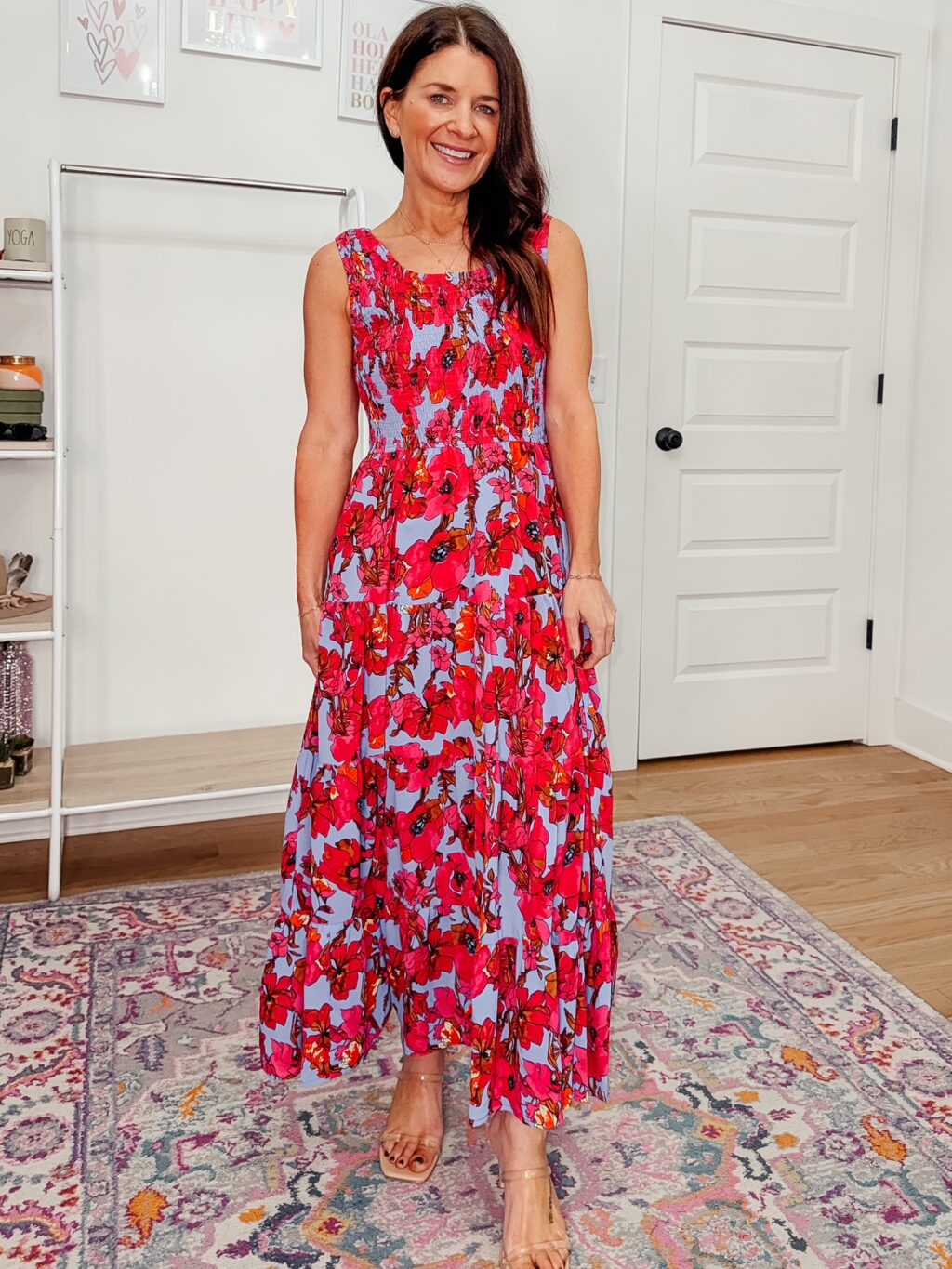 Blue Floral Spaghetti Strap Dress – 50% off, under $15. Use code 50VWSJ8B. Promo expires 1/26 at midnight PST. I am wearing a size small and find they dress fits true to size; though you can probably size down if in between sizes. Click below to shop.