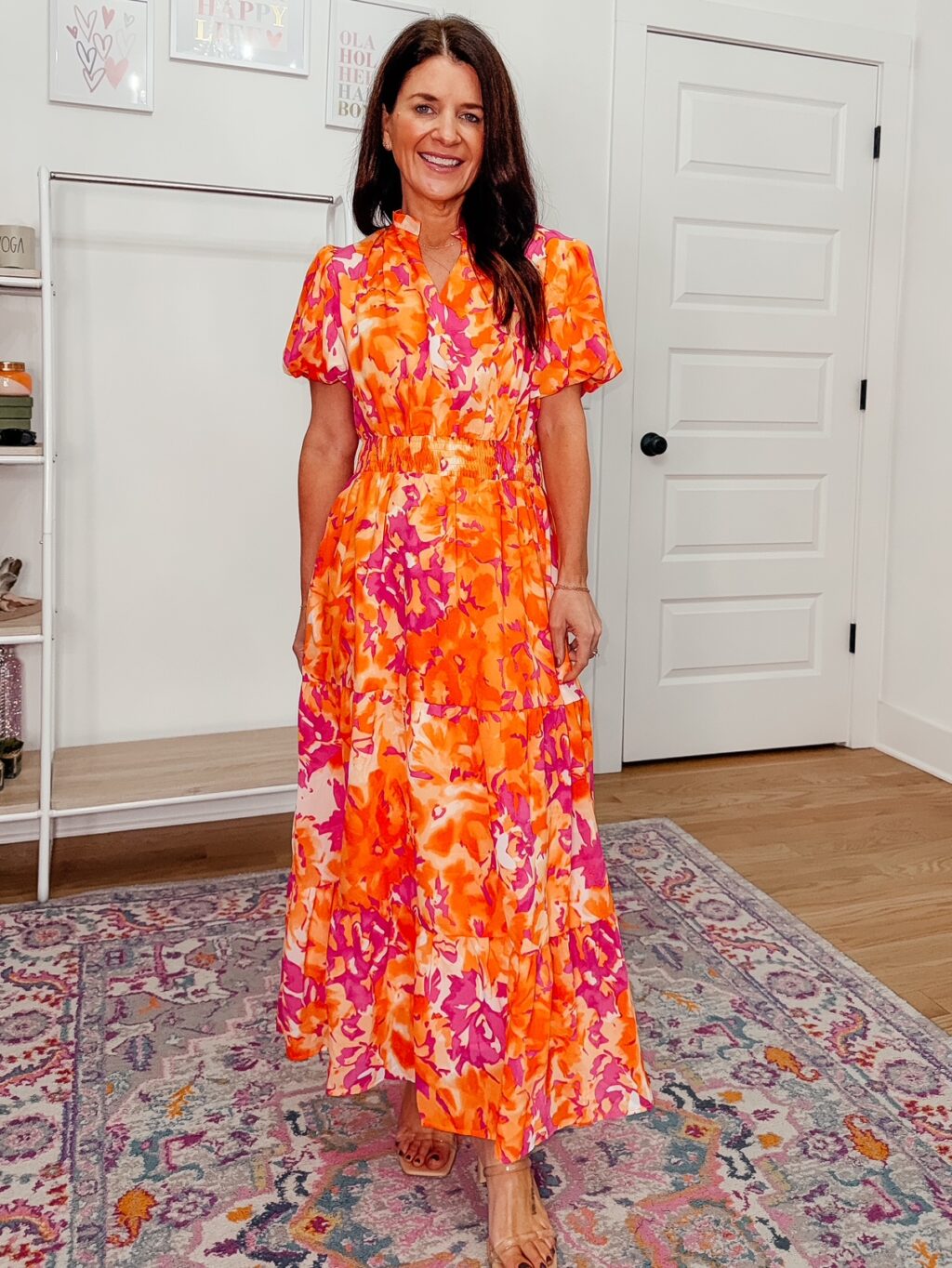Orange and Pink Puff Sleeve Dress – 55% off (45% promo + 10% coupon), $15-$17. Use code XD3ZV6HH. Promo expires 1/27 at midnight PST. I am wearing a size small and find the dress fits true to size. Click below to shop.