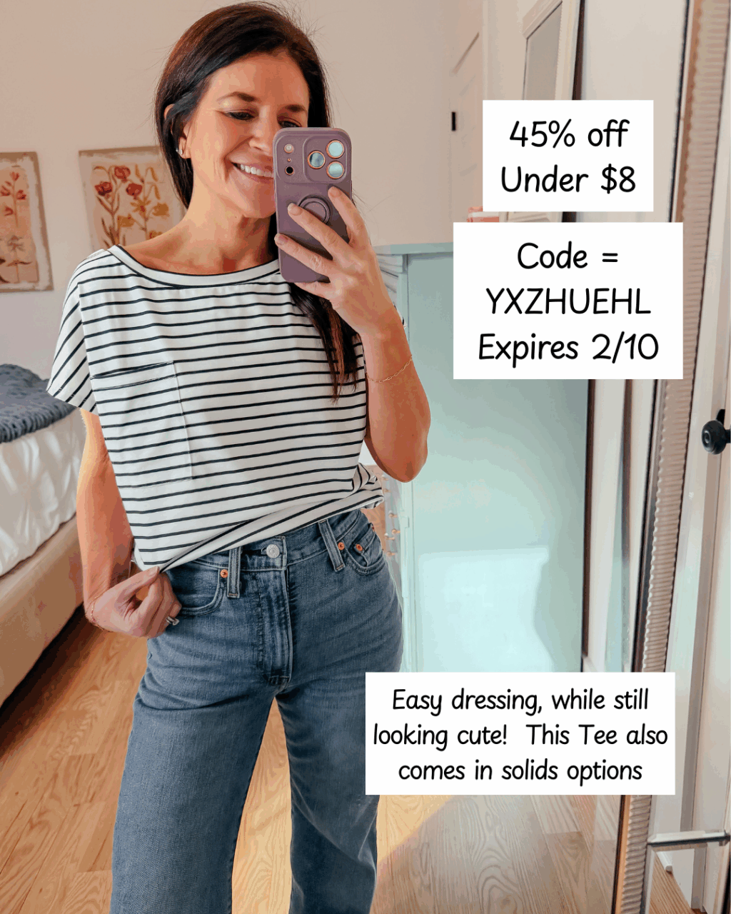 - Striped Tee – use code YXZHUEHL. Expires 2/10
