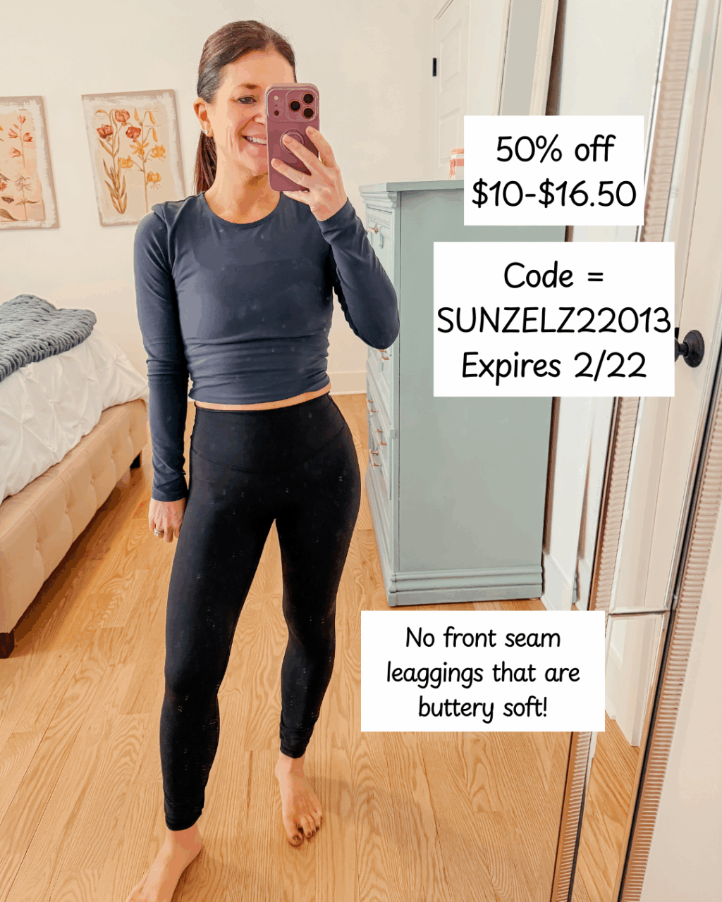 - Leggings – use code SUNZELZ22013. Expires 2/22
