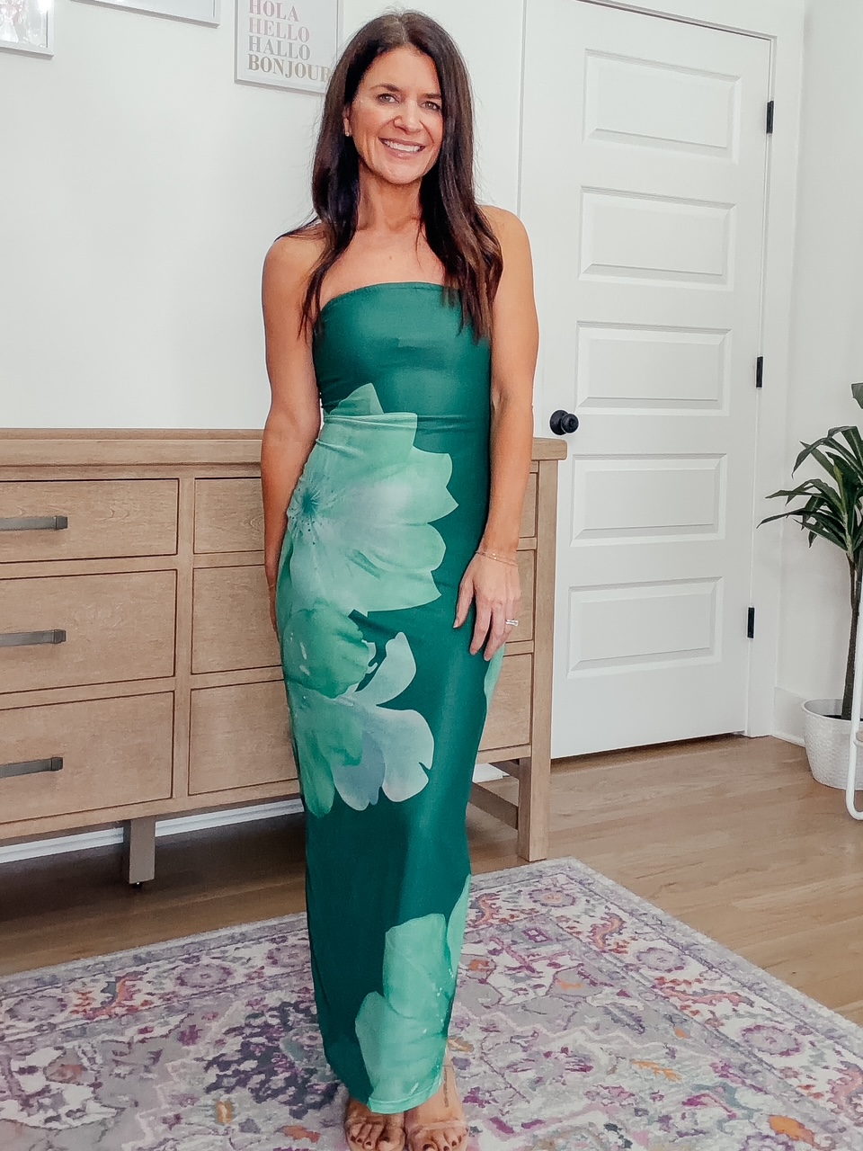 Green Mesh Strapless Dress – 30%-50% off (30% promo + some options have a 20% coupon), $15-$23. Use code L45QKFRO. Promo expires 2/15 at midnight PST. I am wearing a size XS and find it true to size. Click below to shop.