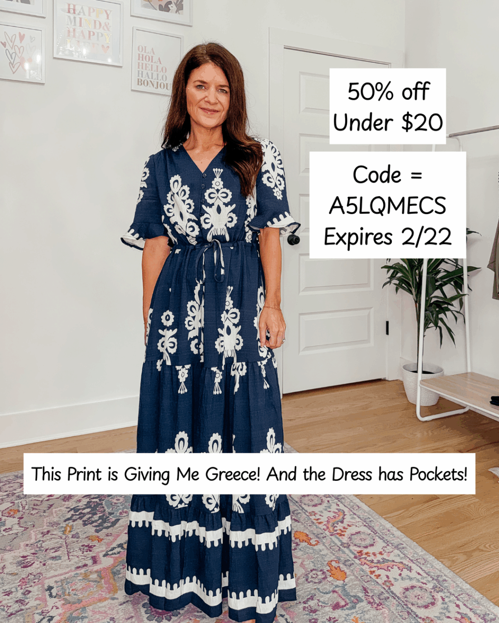 - Navy Printed Maxi Dress – code = A5LQMECS. Exp 2/22