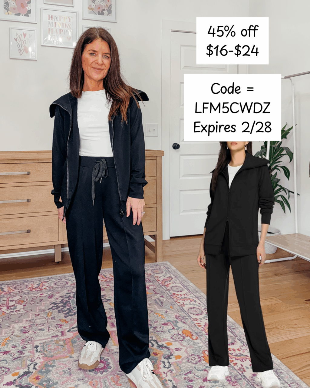 - Black Double Zip Jacket Set – code = LFM5CWDZ. Exp 2/28 (black excluded from deal)