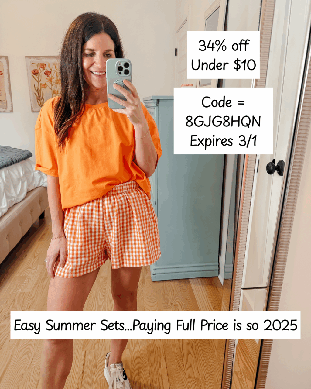 - Orange Plaid Short Set – code = 8GJG8HQN. Exp. 3/1