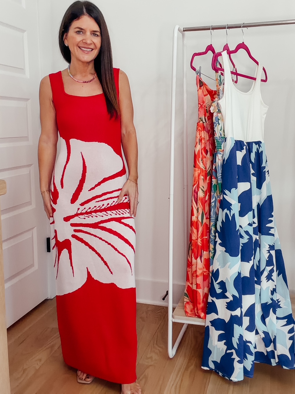 Red Knit Dress With Flower – 50% off, $16-$19. Use code ENPJ5TNN. Promo expires 3/8 at midnight PST. I am wearing a size small and find it true to size. Click below to shop.