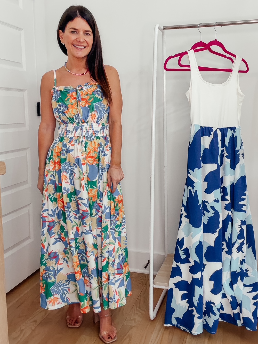 Orange Floral Mesh Dress – 50% off, under $20. Use code 223UTNC5. Promo expires 3/8 at midnight PST. I am wearing a size small and find it fits pretty true to size, a little big up top. Click below to shop.
