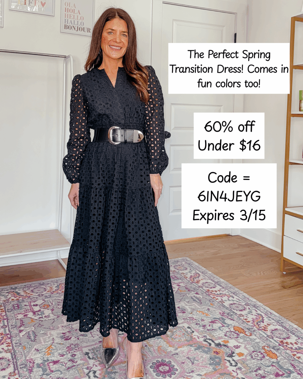 - Black Eyelet Dress – code = 6IN4JEYG + coupon. Exp 3/15