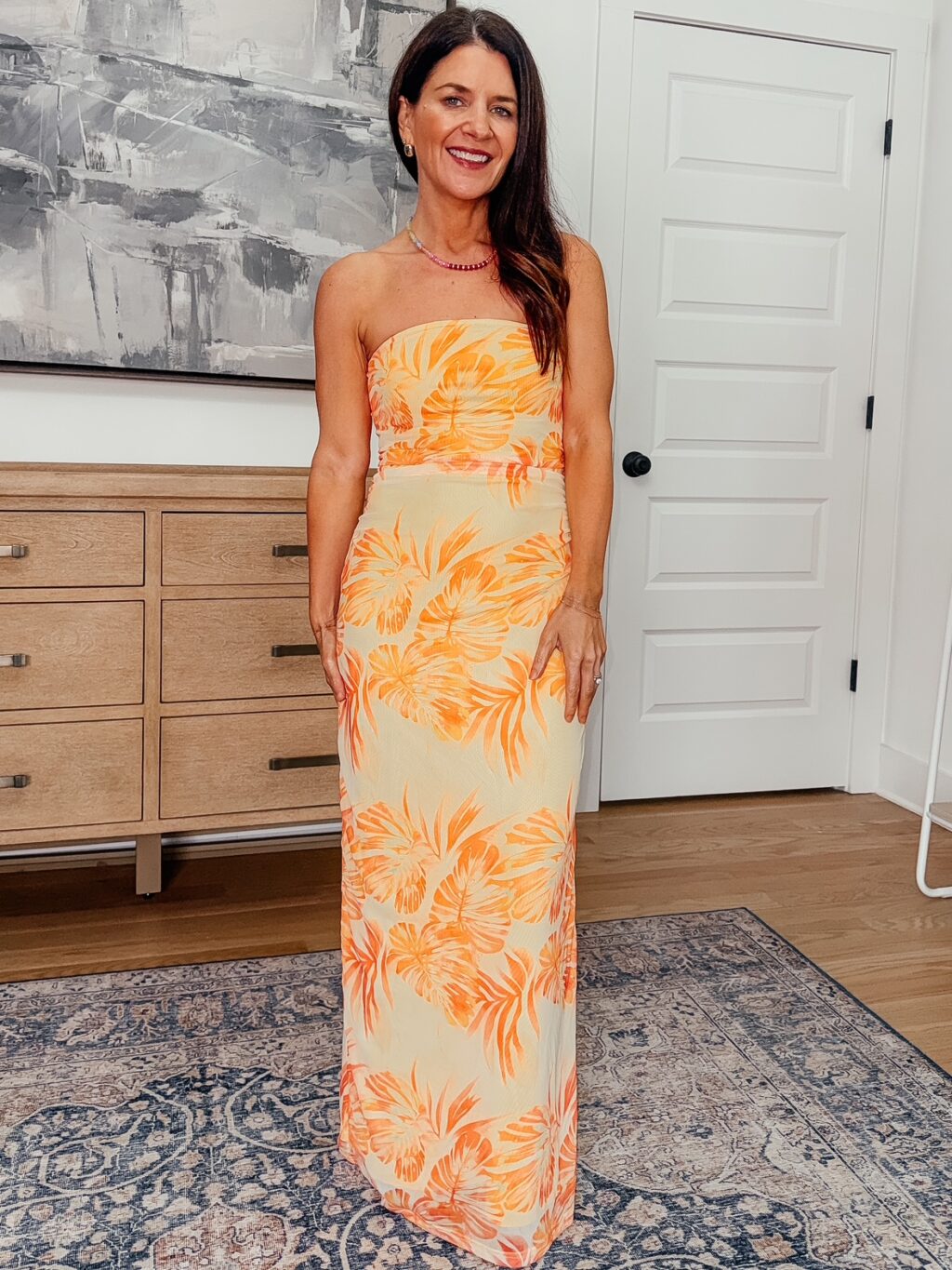 Yellow Tropical Dress – 50% off, under $14. Use code 50D4BN2X. Promo expires 4/5 at midnight PST. Wearing a size small and find it fits true to size.