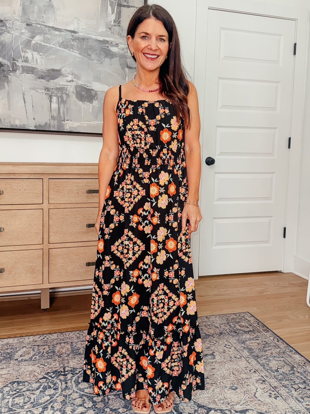 Black Floral Dress – 40% off, $24-$27. Use code 40VY7ADC. Promo expires 4/6 at midnight PST. Wearing a size small and find it fits true to size.