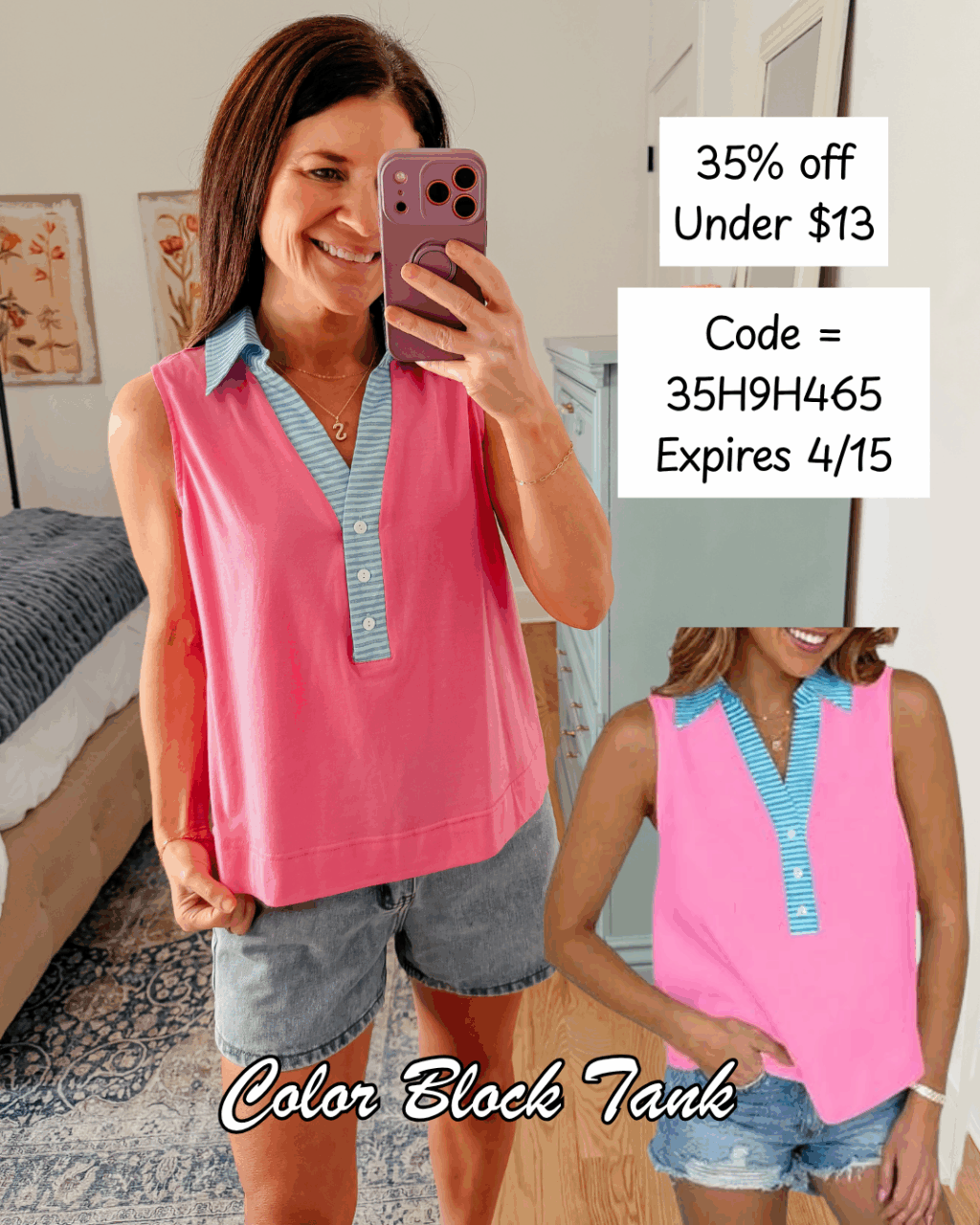 - Pink Color Block Tank – 35H9H465. Exp 4/15
