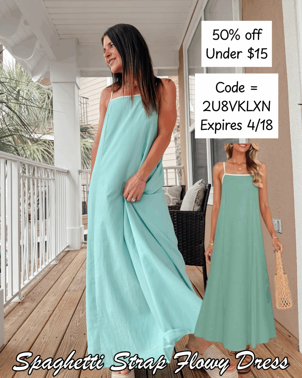 - Aqua Spaghetti Strap Dress – 2U8VKLXN. Exp 4/18