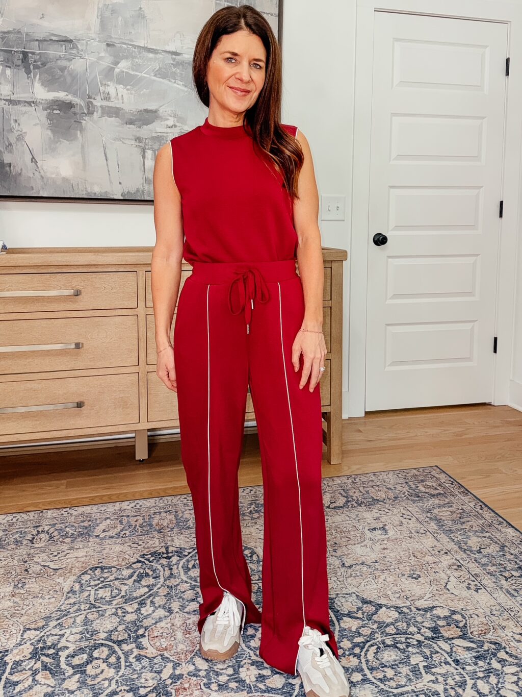 Pant with White piping Set – 40% off, select colors under $20. Use code 73GADL8K. Promo expires 4/22 at midnight PDT. I am wearing a size XS and find it fits true to size. This promo only works for the following colors: dark grey, black, dark beige, beige, army green, and blue grey