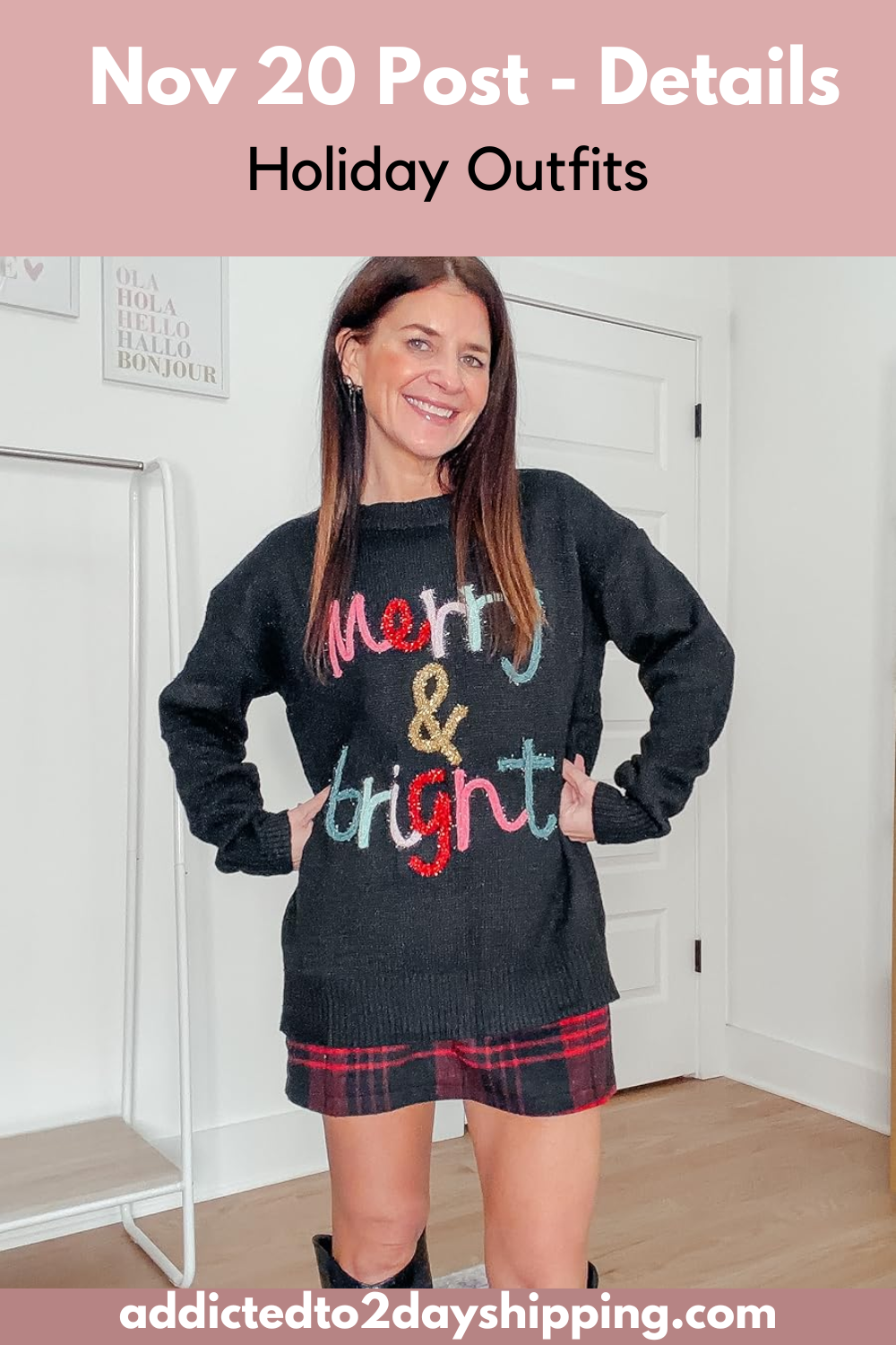 Festive plaid skirt outfits, perfect for the holidays! Shop all pieces in my storefront here or below. Plaid Skirt – up to 41% off. Price varies, $23-$33. I am wearing an XS and find it a little big, but I would go true to size. Comes in 30+ print options! Click below to shop.